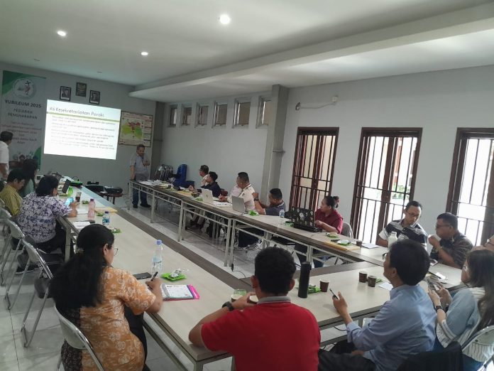 BERTEMPAT di Aula Gereja Salib Suci Paroki Purwakarta berlangsung kegiatan Pembinaan Sekretariat Paroki dan Sekretaris Dewan Pastoral Paroki (DPP) Harian Dekanat Pantura Jawa – Keuskupan Bandung.