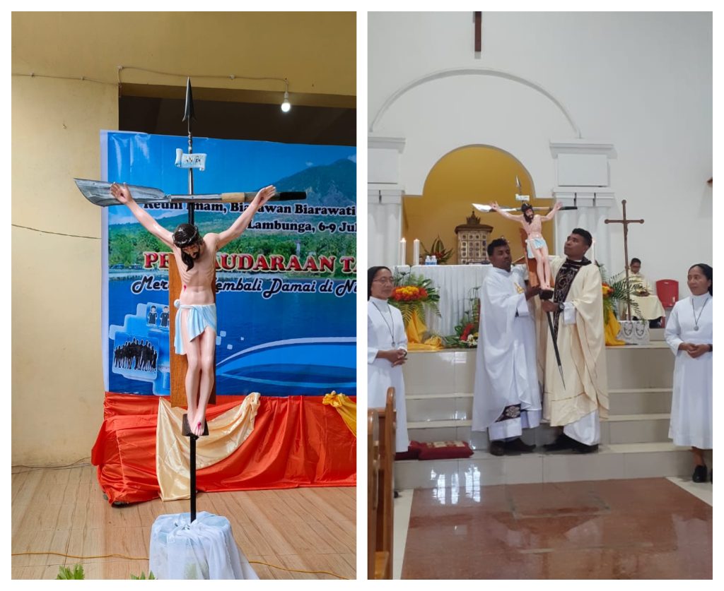 Dalam perayaan Ekaristi ini juga dilakukan pemberkatan salib damai yang lahir dari refleksi dan komitmen lokakarya “Bleba Broit” oleh Mgr. Kopong Kung.