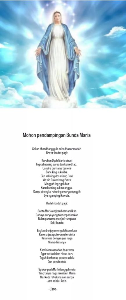 BERITAIMAN KATOLIK Mohon Perlindungan Bunda Maria By Lino Sanjoyo - August 15, 2023 0 902 views FacebookTwitterPinterestWhatsApp Santa Maria della Strada alias Dipamarga alias Samadi Klender. Mohon Perlindungan Bunda Maria.