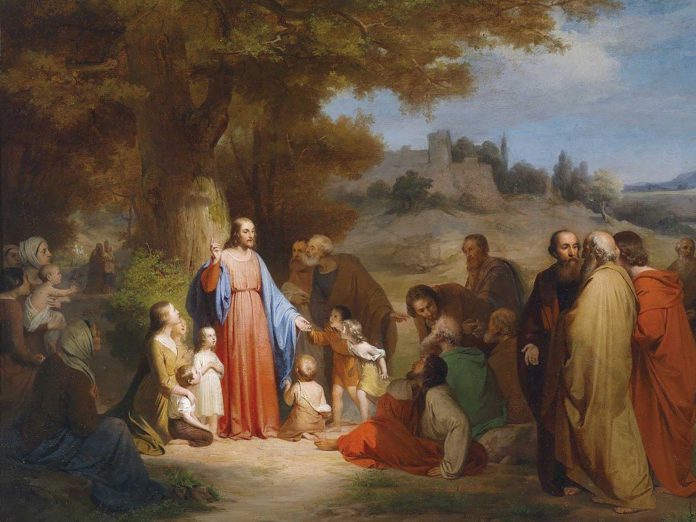Lalu orang membawa anak-anak kecil kepada Yesus, supaya Ia menjamah mereka; akan tetapi murid-murid-Nya memarahi orang-orang itu. Ketika Yesus melihat hal itu, Ia marah dan berkata kepada mereka: “Biarkan anak-anak itu datang kepada-Ku, jangan menghalang-halangi mereka, sebab orang-orang yang seperti itulah yang empunya Kerajaan Allah. Aku berkata kepadamu: Sesungguhnya barangsiapa tidak menyambut Kerajaan Allah seperti seorang anak kecil, ia tidak akan masuk ke dalamnya.” Lalu Ia memeluk anak-anak itu dan sambil meletakkan tangan-Nya atas mereka Ia memberkati mereka.