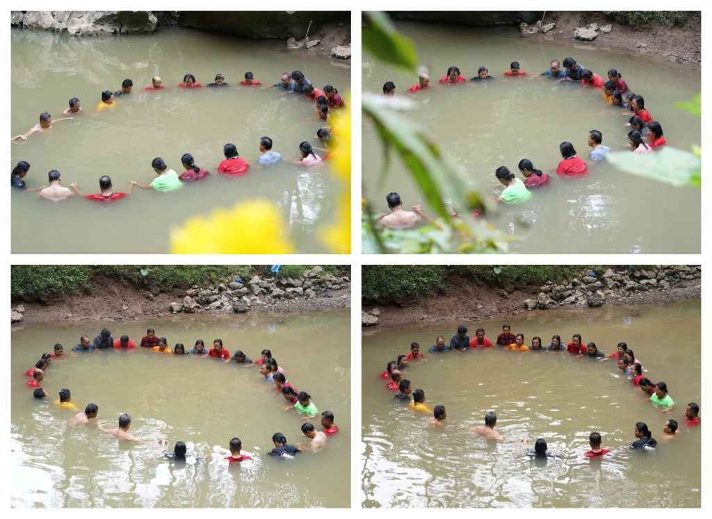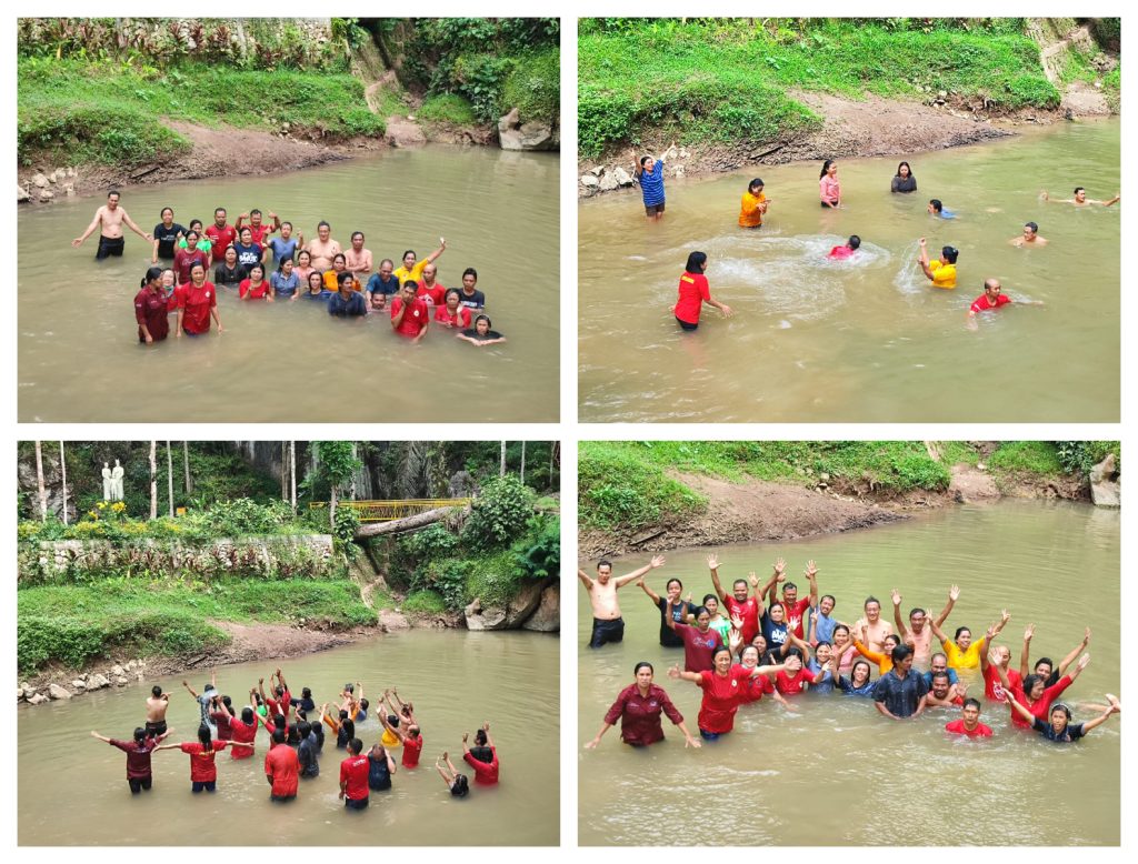 Pembaharuan Janji Baptis dengan cara menceburkan diri masuk ke dalam kolam. Inilah salah satu proses tahap akhir program Retret Ekologis di Pusat Ziarah Keluarga Kudus Nazaret di Sapak Bayo-bayo, Sangalla, Tana Toraja, Sulsel. (Romo Ferry SW)