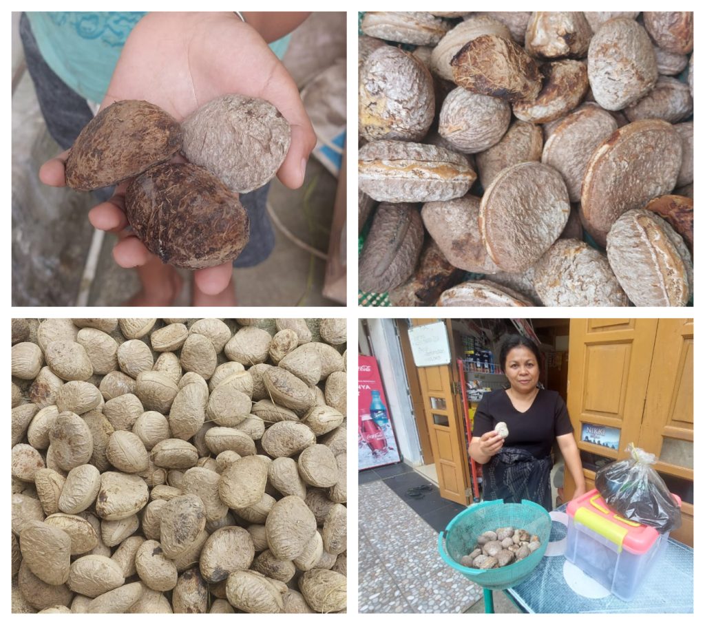Inilah buah kluwek atau kluwak yang menjadi andalan bumbu menu masakan rawon. Pohon kluwek banyak ditemukan di Pusat Ziarah Keluarga Kudus Nazaret Sapak Bayo-bayo, Tana Toraja, Sulsel. (Romo Ferry SW)