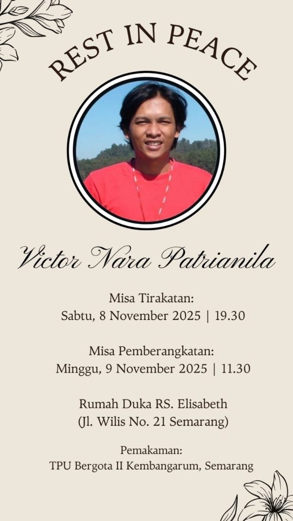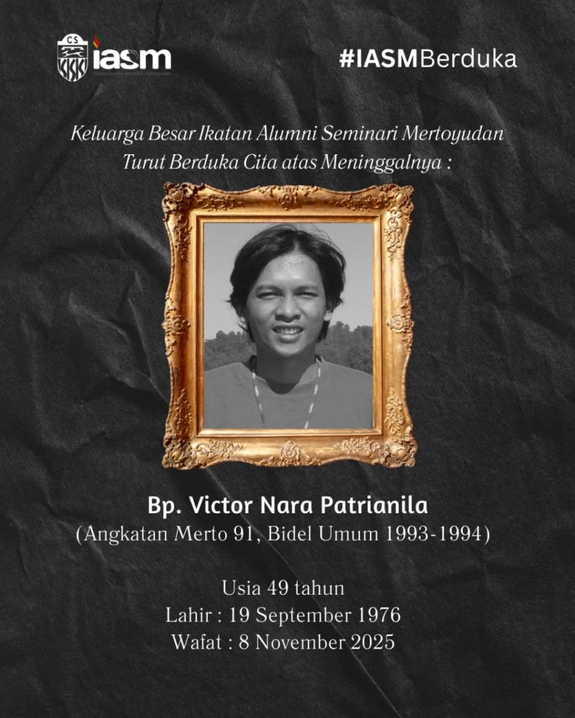 KABAR duka dari jaringan Ikatan Alumni Seminari Mertoyudan (IASM). Telah meningga dunia di RS Sint Elisabeth Semarang, hari Sabtu 8 November 2025 pukul 08.21 WIB: Victor Nala Patrianila (1976-2025).